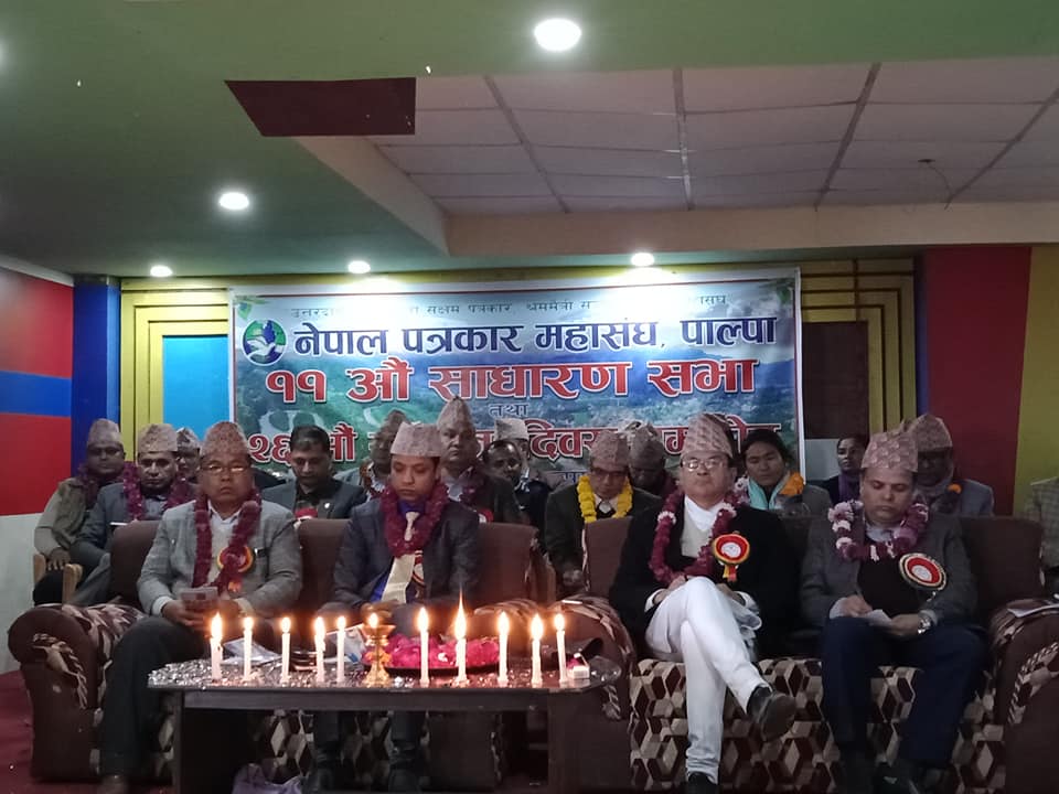 होटेल न्यू श्रीनगरको सभाहलमा भएको कार्यक्रम नेपाल पत्रकार महासंघ पाल्पा शाखाका अध्यक्ष राजेश कुमार अर्यालको अध्यक्षता, उपाध्यक्ष भरत शर्माको स्वागत र सचिव किरण कौशलको सञ्चालनमा भएको हो ।