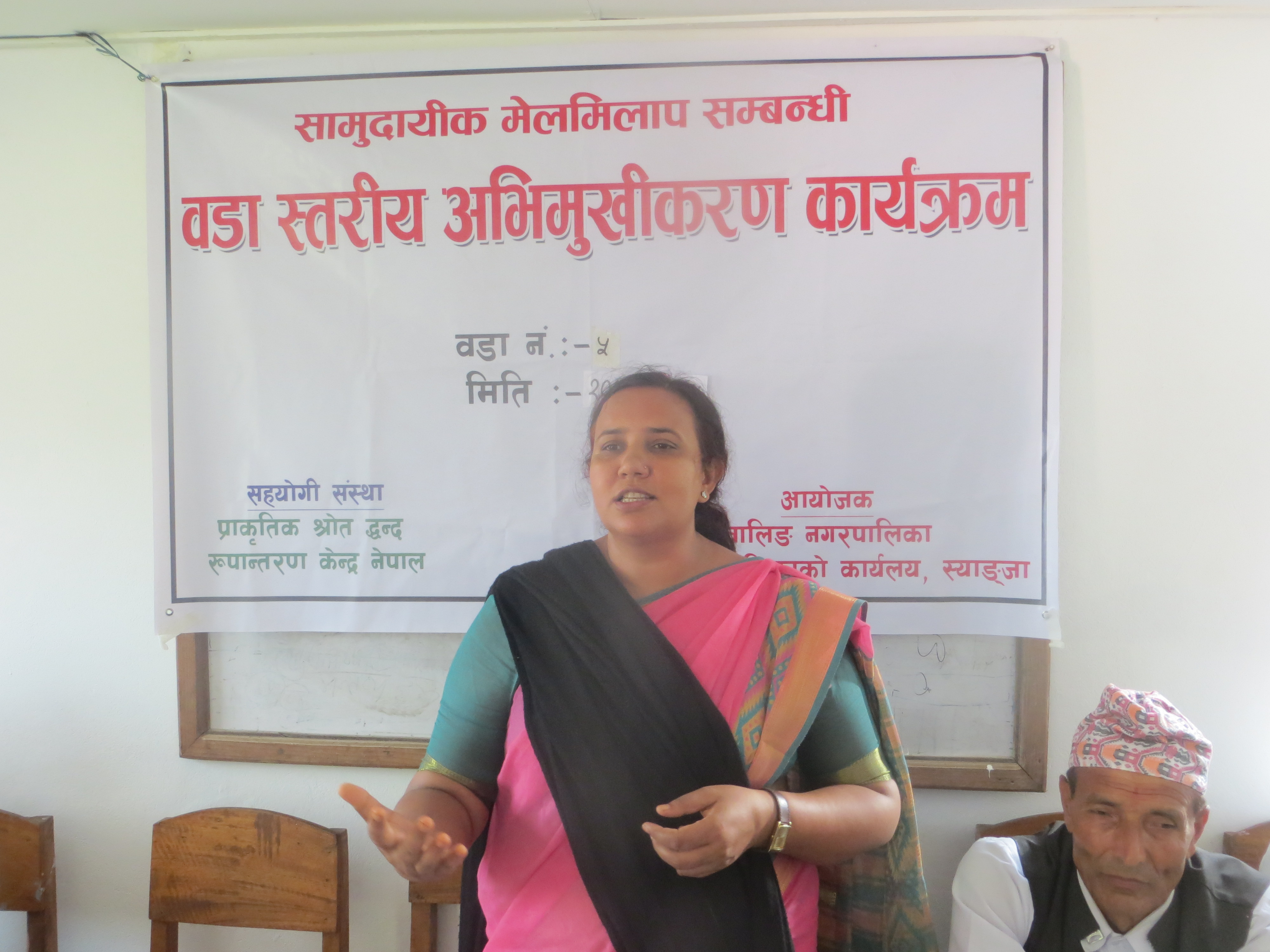 छनौट तथा अभिमुखिकरण कार्यक्रममा द एसियन फाउन्डेशन स्याङ्जा शाखाका संयोजक सिताराम पौड्यालले सहजिकरण गरिरहनु भएको छ । वालिङ ५ का वडा अध्यक्ष ढाकाराम पंगेनीको अध्यक्षतामा भएको कार्यक्रम वडा सदस्य महेश गुरुङको स्वागत र द एसियन फाउन्डेशनका अनुशा काफ्लेको संचालनमा भएको थियो । कार्यक्रम वडा नं. ५ जगतभञ्ज्याङको सभा हलमा भएको थियो ।