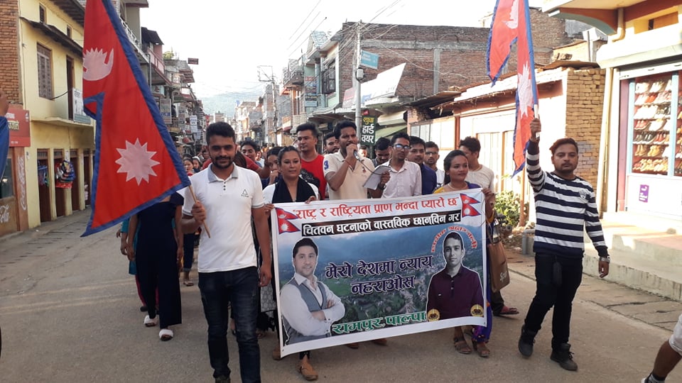पाल्पा (रामपुर) चितवन घटनाको वास्तविकता छानविन गर्न माग गर्दै पाल्पाको रामपुरमा र्याली निकालिएको छ ।